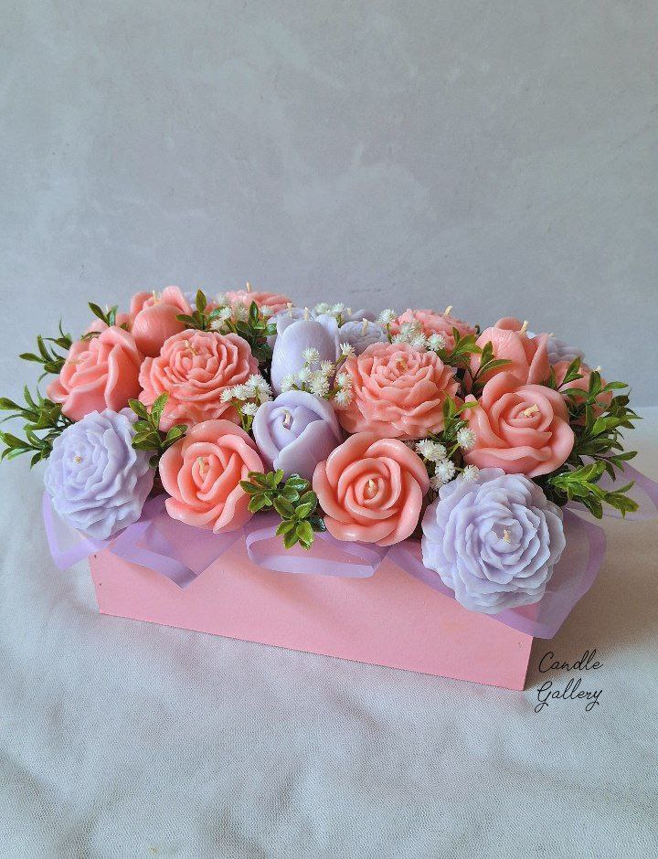 باکس گل شمعی مستطیلی (رنگ صورتی-یاسی)