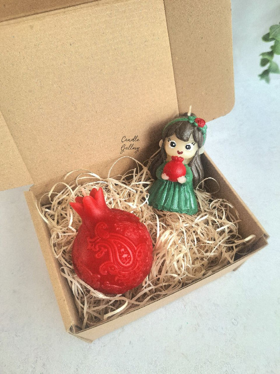 این پک شامل یک عدد شمع انار طرح ترمه و یک عدد شمع دخترک انار به دست میباشد