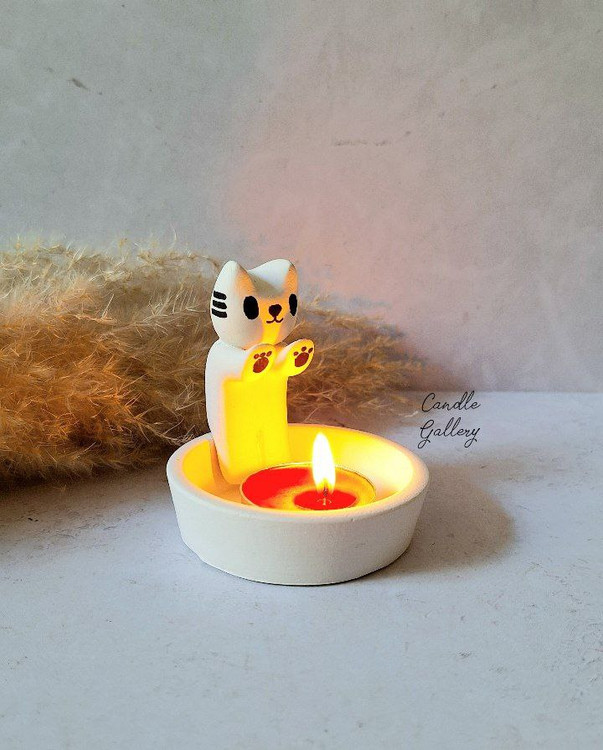 جاشمعی طرح گربه با ارتفاع ۸ سانت، ساخته شده از پودر سنگ مقاوم و باکیفیت، جلوهای جذاب و مدرن به میز یا دکور شما میبخشد.